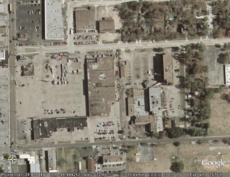 In 1963 we moved to Houston, Texas where my father took a position as the administrator of Sam Houston Memorial Hospital. We lived in a small wood frame house on the grounds of the hospital. When I first looked at this picture, I thought that the house was longer there, but upon closer examination I found that I could see the foundation of the house which appears to have still been there when the picture was taken. The house sat directly behind a K-Mart (larger structure in center of picture).
