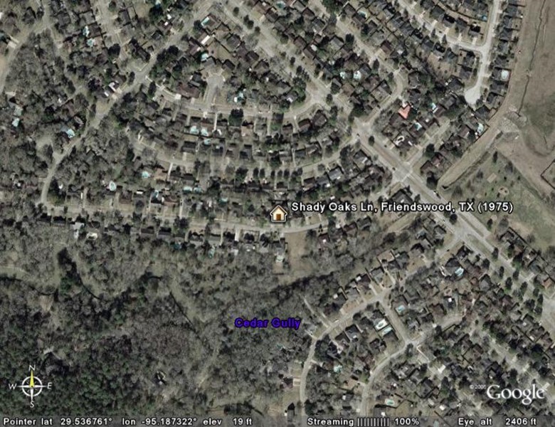 In 1975 when the Space Center Memorial Hospital went belly-up, we could no longer live in Nassau Bay and moved southwest of there to a community near Friendswood, Texas. Friendswood is in Galveston county and this tract was just over the county line in Harris county. I only lived here for a few months and moved out on my own for the first time to share an apartment with a friend in Webster, Texas.
