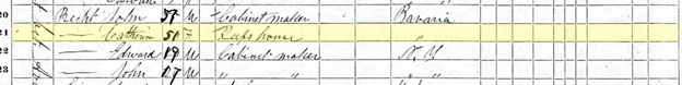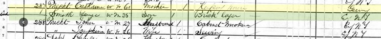 For, the 1880 census, I searched for John Brecht and John Precht without success. It appears that he died sometime in the previous decade because we find Catherine Precht age 61 as living with her son John and her daughter-in-law Josephine. John’s occupation is listed as “cabinet maker”. There is a person named George Smith who is listed as her son. It is odd but the age of the man does match the age of her son George. The place for this section of the census is listed as enumeration district 375 in Manhattan New York City.