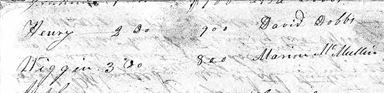 - David Dobbs – husband of Elizabeth McMullan, a daughter of Patrick and Sarah. He was a former sheriff of Elberton Georgia and a colonel in the Georgia militia. (I only mention this because it adds some color).