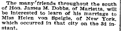 James was from Georgia, and Helen was from Dallas, Texas. As to their marriage in New York City, The only thing that I can figure is that Helen had a connection to that city through her mother, Sophia, who was born in NYC and died back in the 1880s when Helen was a child. Yet that does seem like a stretch, and I suspect there is another reason they were married in that city.