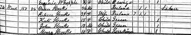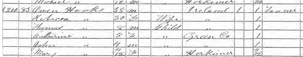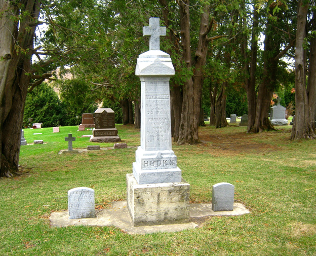 Owen and Rebecca Hooks, parents of Molly Hooks, are buried in St. Michael’s Catholic Cemetery in Olmsted County, Minnesota. Their monument tells us that he died November 14, 1892, when he was 73 years old, and Rebecca died on February 5, 1904, at the age of 78.