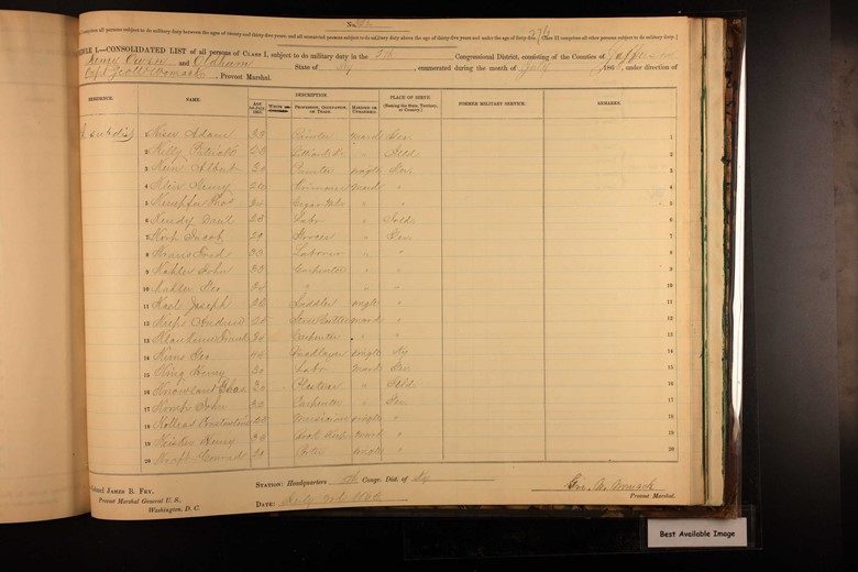 Now, I have determined that he did at least register for the draft, and in fact, it was only a few days after Pres. Lincoln ordered draft registration to begin. According to the document, I found Constantine registered for the first Federal draft on July 3, 1863 during Draft Week, at Louisville, Jefferson County, Kentucky.
