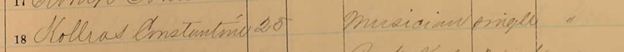 At the start of the Civil War in 1861, my great-great-grandfather, Constantine Kollros, was 23 years old. Yet, up until yesterday, I was unable to determine which side of the battlefield he was on or whether he served not at all. According to the US census of 1860, Louisville, Kentucky, Constantine was employed as a musician. For years, I searched through Kentucky and Ohio muster rolls for both the Confederate and Union forces. Neither Constantine nor his brother Dominic appeared on any of the lists I searched.