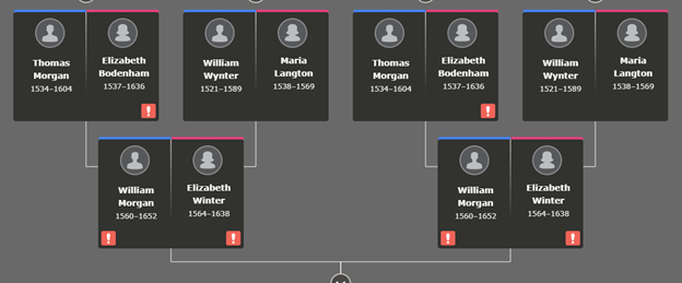 The tree indicated that my 10th great-grandparents, William Morgan and Lady Elizabeth Morgan, were brother and sister. However, it did not take long to determine that was a mistake.