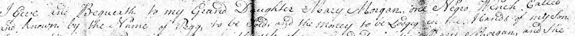 When Jane Knea Morgan died in 1742, she left most of her property to her daughters and granddaughters. Some of the property that she bequeathed to her heirs was human property.