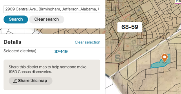 Even though access to the US census for 1950 is limited due to the lack of indexes, a few of the states have been indexed and it is a work in progress. For areas that have not been indexed, there is an alternative to having to browse through hundreds of images trying to find the proverbial needle in a haystack. At Ancestry.com there is the 1950 Census District Finder. If you know the full address of the household you are looking for, you can enter it in this tool to locate the enumeration district on a map of the United States. I was able to use this tool to locate my paternal grandparents in Hastings, Nebraska and my maternal grandmother in Birmingham, Alabama in the U.S. Census for 1950.
