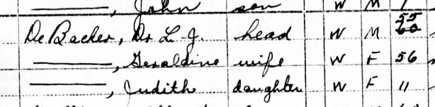 In 1950, my paternal grandparents, Dr. L. J. and Geraldine DeBacker resided at 1000 North Kansas Ave., Hastings, Nebraska. Living with them at the time was their 11-year-old daughter, my aunt Judy.