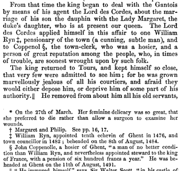 There was another brief mention of Jan Van Coppenolle found in The Memoir of Phillip de Commines. By Philippe de Commynes, Jean de Roye · 1856. It appears Jan replaced another tyrant, a man named William Ryn. Note the date of Jan’s beheading is different in this account.