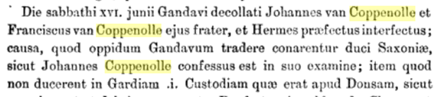 After publishing last night, I found yet more books at Google Books that hold new information regarding my ancestor, the insurrectionist, Jan Van Coppenolle. Thanks to the (new?) translation feature in Google Books, I could quickly decode the data from Latin and French.