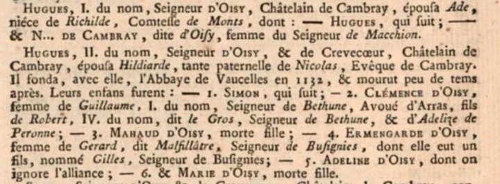 One source says that Clemence d’Oisy is the granddaughter of Ade De Hainaut, daughter of Baudouin, Latin Emperor of Constantinople, Count of Flanders & Hainaut. Yet another source says that Ade De Hainaut was the sister of Baudouin, Emperor of Constantinople.