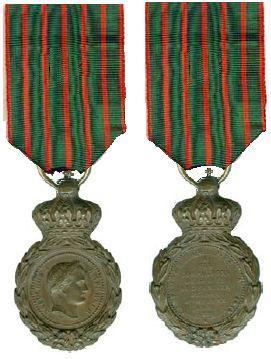The Sainte Helene’s medal, created in 1857 by Napoleon III, rewarded the 390,000 soldiers still living at the time who had fought with Napoleon I during the 1792-1815 wars. The decorated soldiers were born around 1765-1797 and still lived in 1857. All of them belonged to the French army between 1792 and 1815. In total, 405,000 soldiers were decorated between 1857 and 1870, and 350,000 French and 55,000 foreign soldiers were decorated.