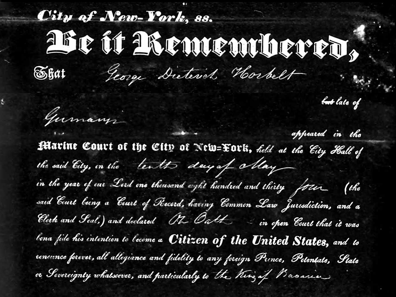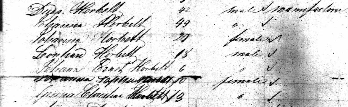 I don’t know much about George Dietrich Horbelt, as I only recently discovered this branch of my family tree. I do know that he was born in 1790 in what was then the Electorate of Bavaria and died in 1850 in New York City. He married Joanna Augustina Werther in Bavaria, and together they had five children: four daughters and one son.