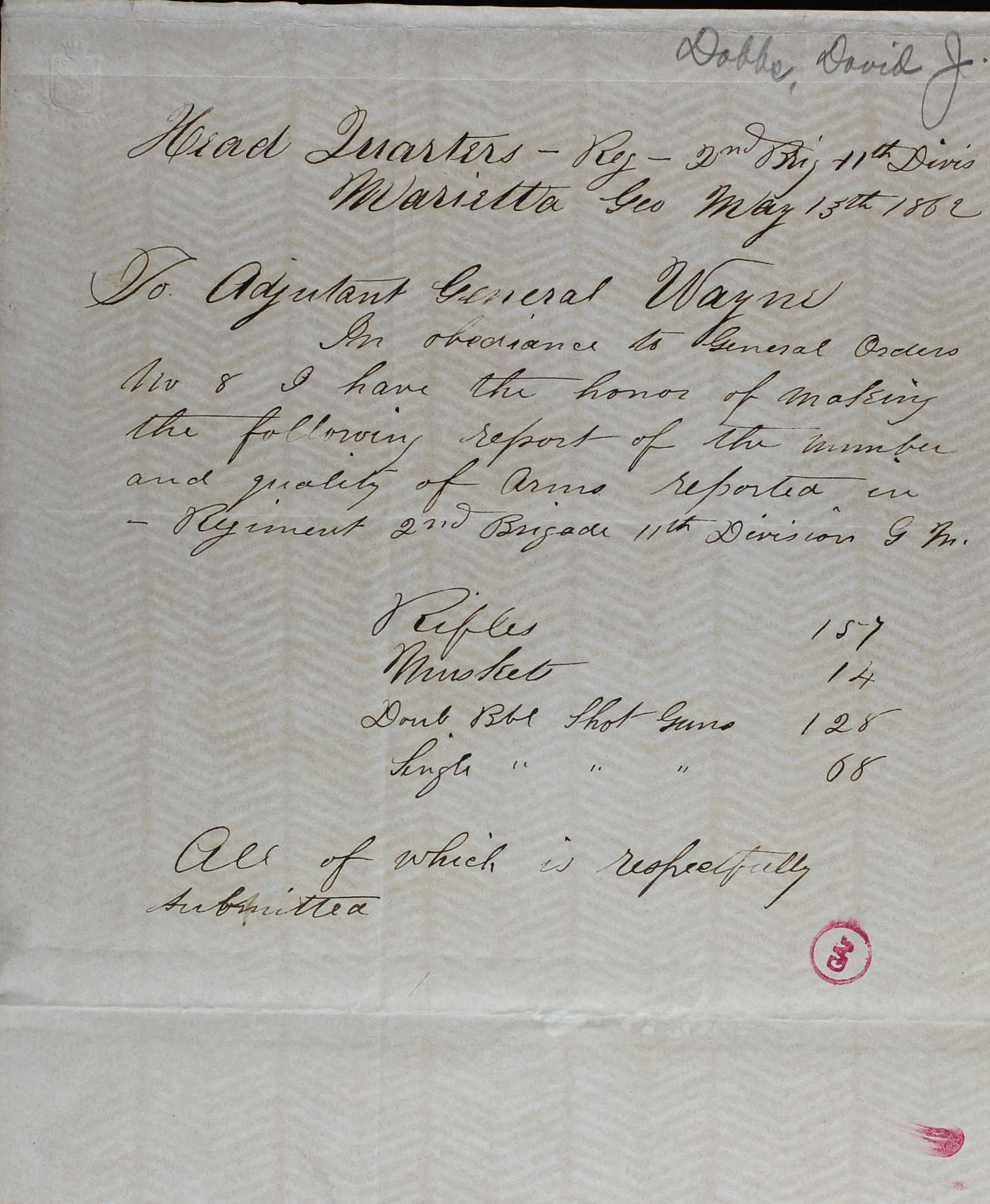 So what’s still unclear is whether or not D. J. Dobbs, a graduate of Georgia Military Institute in 1856, at any point during the war actually took up arms against the United States. Throughout the rest of his life until he died in 1877 at the age of 42, he was known as Colonel David Judson Dobbs.